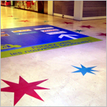 ISMD sérigraphie, façonne et conditionne des adhésifs de sol de toutes formes, toutes couleurs et sur toutes les matières. Donnez vie à toutes vos créations.
